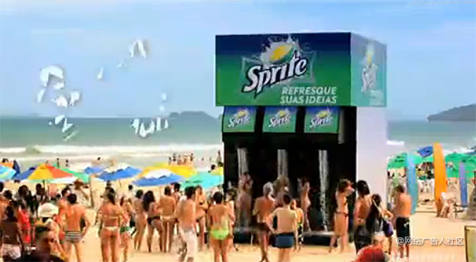 雪碧广告沙滩大型冷饮机 2012-05-19 该案例比较早,视频可能看不了,请在电脑上访问 https://iwebad.com/case/1474.html 雪碧一直的广告语都是透心凉,而这次是在南美巴西为用户带来的户外冷饮机,体验一把透心凉的感觉在这炎热的夏天是多么好的一件事情啊。
