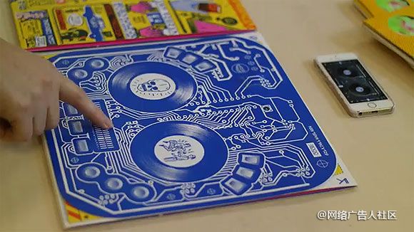 现在虽然数字音乐很流行,但是还是有一部分人会购买收藏黑胶唱片,当前这个就是在黑胶唱片的封面上放上蓝牙互动装置,利用蓝牙同步,用户在收到的黑胶唱片封面上就可以实时的打碟.