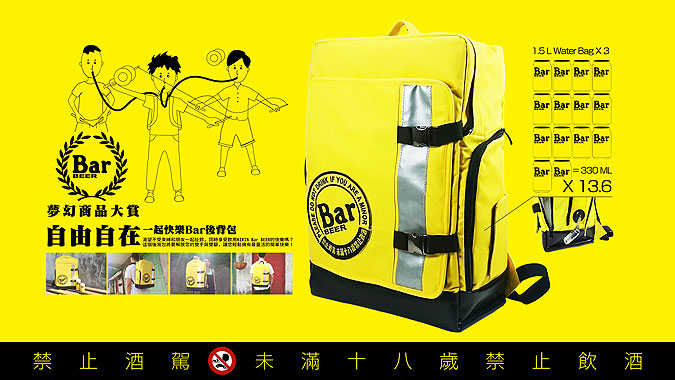 为了与目标年轻族群沟通KIRIN Bar BEER的品牌精神『和朋友们一起享受简简单单喝啤酒的快乐』,并搭配年度电视广告主题,KIRIN举办了全世界首届的『KIRIN Bar BEER 梦幻商品大赏』,得票数最高的商品,将会实际製作并赠送给一位幸运得奖者。五项商品的设计将传达『无时无刻都能与朋友们一起享受简简单单喝啤酒的快乐』。