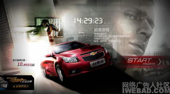 这里采用的CG技术并非新技术, 但其情景化的特点非常适合表现CRUZE的个性。在追逐游戏中融入产品性能体验。