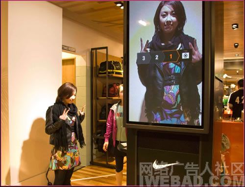 1、在店里面摆设一个颜色捕捉机器,用户只需要站到摄像头面前,该机器就会捕捉用户身上的颜色,提取其中的几个颜色用户定制NIKE的新鞋款。即平时NIKEID是需要用户在电脑上面操作然后定制自己的鞋款,而这个这个机器的好处是直接捕捉用户身上的颜色(随身的颜色通常都是用户比较爱好的颜色搭配)。
