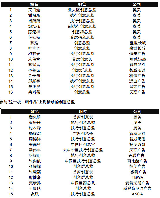 奥美中国首席创意长樊克明(Graham Fink)表示:“‘这一夜,晒作品’是一个独一无二的机会,让身怀抱负投身广告业的学生,向顶尖创意人展现自己的大想法。在奥美,我们承诺向出席北京和上海的少数候选人提供实习机会。在伦敦的一家代理商工作期间,我曾聘用了一名年轻人,他是我六年前在该活动上认识的。近日,他搬到上海居住,我们再次邀他一起工作。所以,这一切都是真实的,充满着足以改变一生的潜在机遇。所以,请务必想尽一切办法获得一张入场券!”