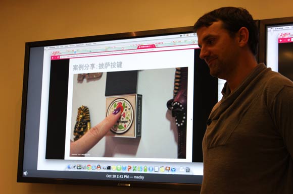 Pizza叫外卖的装置:在迪拜有很多说着不同语言的人,于是叫Pizza外卖成了个大麻烦,因为客人的语言你不一定能听得懂。于是有人就用技术来满足了用户的需求,有人设计了一个冰箱帖,上面有一个按钮,当客人按动这个按钮一次,就直接订一份Pizza,按三次就订三份,这样就方便了。