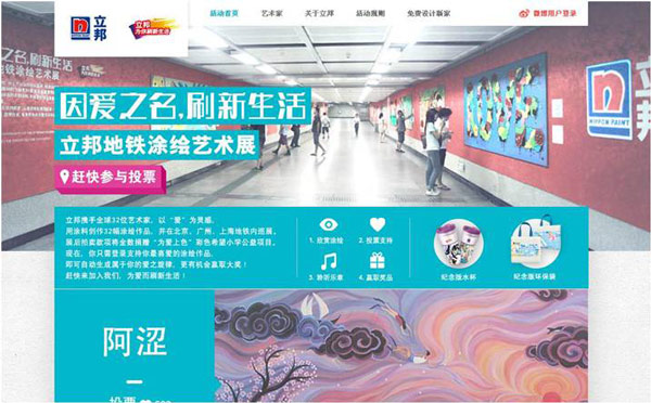 通过网路信息的宣传,吸引更多人注意到活动,并前去参观立邦涂绘展。