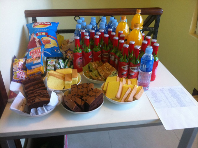 Dalson出场地酒水.搬桌子搬水.八点起来去买灯(投影仪上的灯),付费找电工来装....估计我们再也找不到这么好的讲师了..>"<