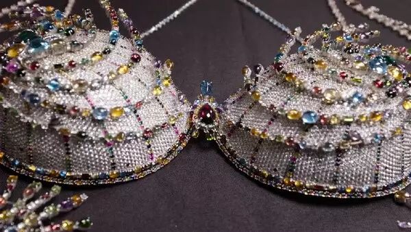 Fantasy Bra依旧是今年维密大秀最大的亮点,它价值200万美金,耗时685小时完成,总重量共375克拉,由126颗钻石和400多颗的宝石组成,可谓是bling bling发光,闪得睁不开眼。而今年的有幸佩戴这款梦幻内衣的是天使超模Lily Aldridge