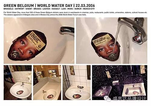 洗手池里被印上了黑人小朋友的形象,开启的排水口就像是张开的嘴,仿佛在告诉你:你所浪费的水资源,正是我最需要的。