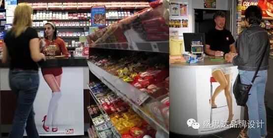 在柜台印上性感大长腿,与柜台后的店员巧妙地融为一体。这个创意可以让女性店员显得更性感,而男性店员,则会令人忍俊不禁。忘了告诉你,这是男性杂志的广告。